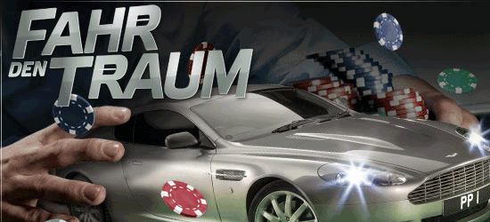 PartyPoker schenkt Ihnen einen brandneuen Aston Martin DB9 Coupe, wenn Sie beim Finale von "Fahr den Traum" in London die Pole-Position einnehmen. Bei täglichen Freerolls können Sie einen Gratisplatz bei diesem Turnier gewinnen: Felixspin Casino spendiert fünf Preispakete für das Finale am 2. Oktober. Holen Sie sich Ihrs, indem Sie jetzt gleich einsteigen und sich für die monatlichen Satelliten qualifizieren, bei dem es einen Platz beim Live-Finale in London zu ergattern gilt. Werfen Sie einen Blick auf das Werfen Sie einen Blick auf das Turnierschema und lesen Sie nach, wie Sie sich einen Platz beim Finale buchen.